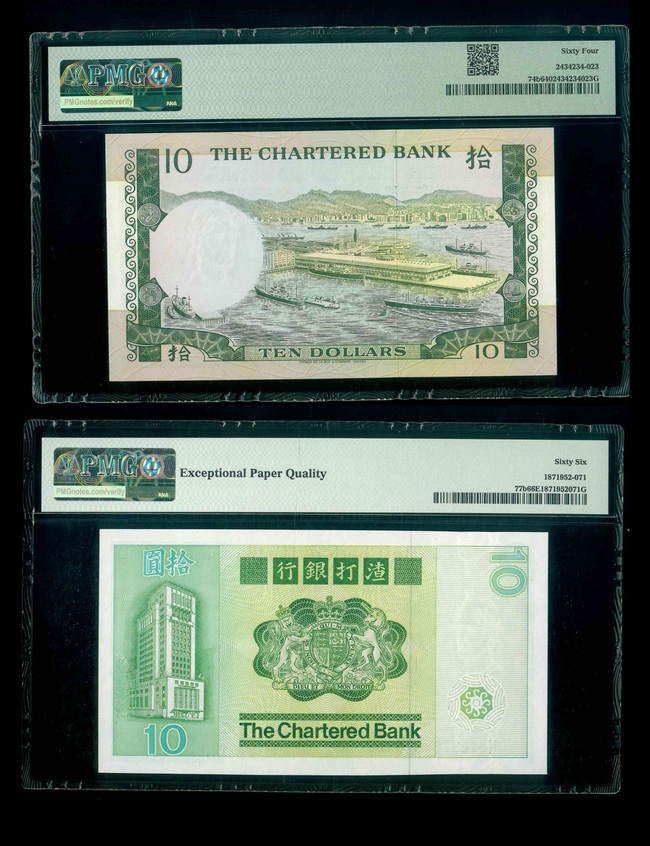 1975ND/1981 香港渣打銀行 $10 PMG 64/ 66 EPQ 編號: D0197836…(共2張)