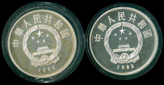 1988 中華人民共和國(野生動物-白鰭豚/朱鹮-2全) $10 Proof 編號: NIL(共2枚)
