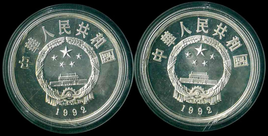 1992 中華人民共和國(野生動物-雪豹/白鶴-2全) $10 Proof 編號: NIL(共2枚)