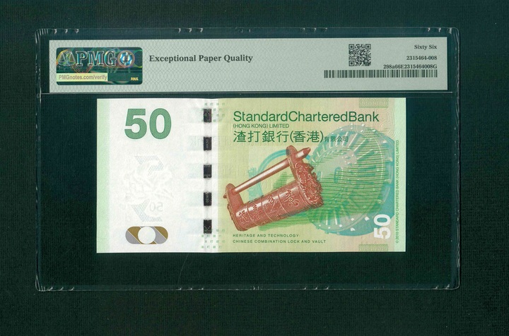 2010 香港渣打銀行$50 PMG 66 EPQ 編號: AA878878(頭版雷達重覆號,頂級雪白)