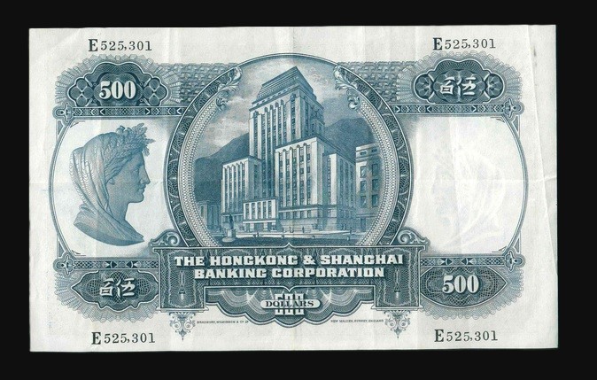 1965 香港上海滙豐銀行 $500 VF+ 編號: E525301(原裝)