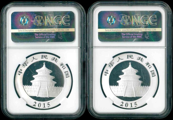 2015 中國熊貓銀幣 S10Y NGC MS69 編號: 4312981-101…(共2枚,有微氧化)