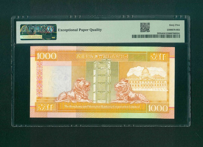 1997 香港上海滙豐銀行 $1000 PMG 65 EPQ 編號:AA391099(頭版系列,頂級雪白)