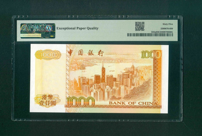 1994 中國銀行 $1000 PMG 65 EPQ 編號:AC323098(頂級雪白)