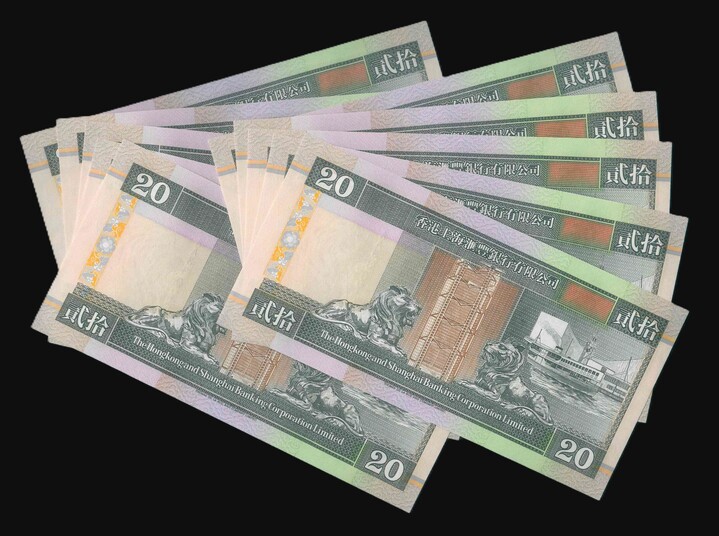 1993 香港上海滙豐銀行 $20 UNC 編號:AA380751-60(頭版十連)