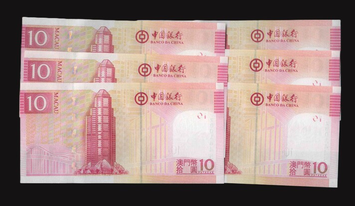 2008 澳門中國銀行 10 Patacas UNC 編號:ZB014451-57(共6張,補版含連號)