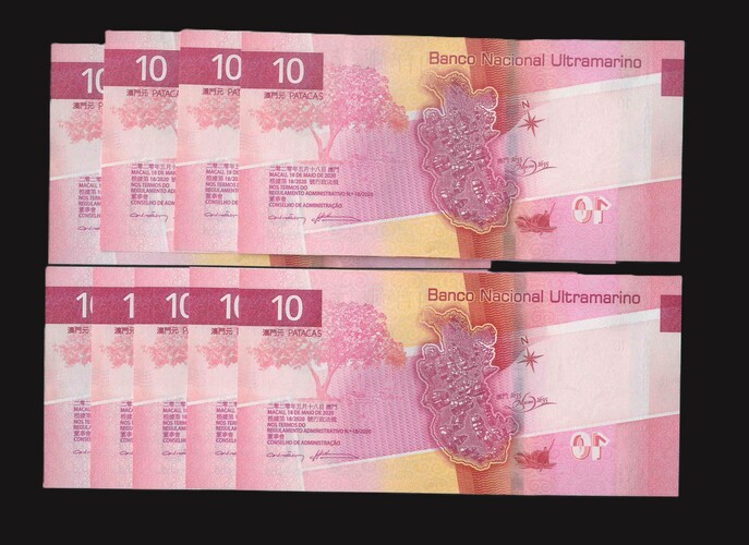 2020 澳門大西洋銀行 10 Patacas UNC 編號:AA622731...(共9張,頭版含連號,頂級雪白)