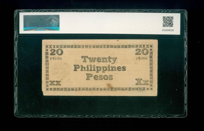 1944 菲律賓(內格羅斯省緊急貨幣)20 Pesos GBCA 55 編號:7628