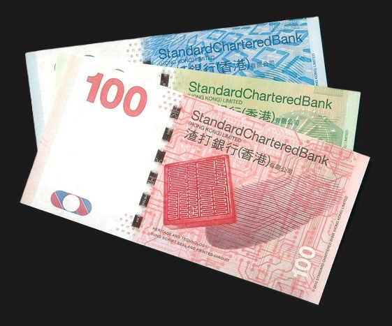 2014-16 香港渣打銀行$20-$100 UNC 編號: FF329444…(豹子號,頂級雪白,共3張)
