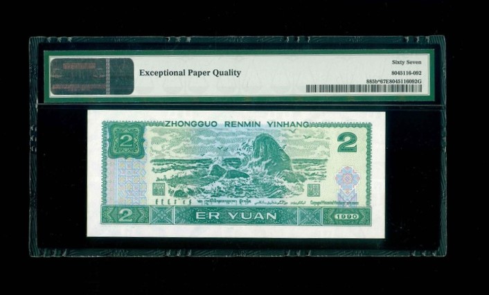 1990 中國人民銀行 $2 PMG 67 EPQ 編號:JX12193994(補版系列,頂級雪白)