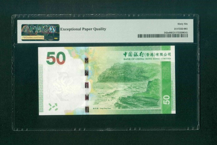 2015 香港中國銀行 $50 PMG 66 EPQ 編號:CV002300(趣味號,頂級雪白)
