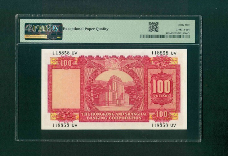 1967 香港上海滙豐銀行 $100 PMG 65 EPQ 編號:118858 UV
