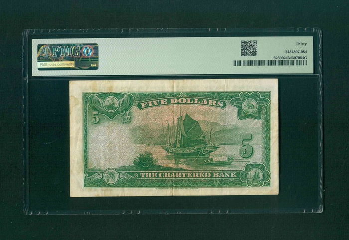 1959 香港渣打銀行 $5 PMG 30 編號:S/F 1950405