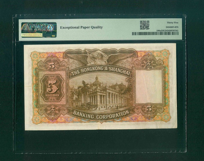 1957 香港上海滙豐銀行 $5 PMG 35 EPQ 編號:G/H 127544