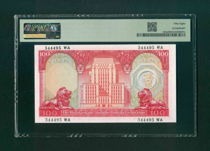 1972 香港上海滙豐銀行 $100 PMG 58 編號:344495 WA