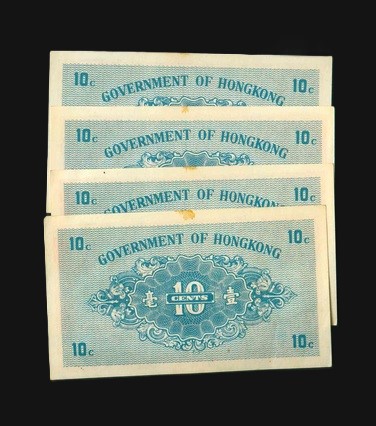 1940 香港政府 壹毫 UNC 編號:A5130349-52(共4張,連號)