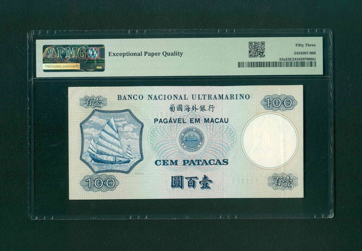 1973 澳門葡國海外銀行 100 Patacas PMG 53 EPQ 編號:820304