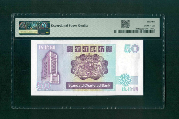 1987 香港渣打銀行 $50 PMG 66 EPQ 編號:B847079(頂級雪白)