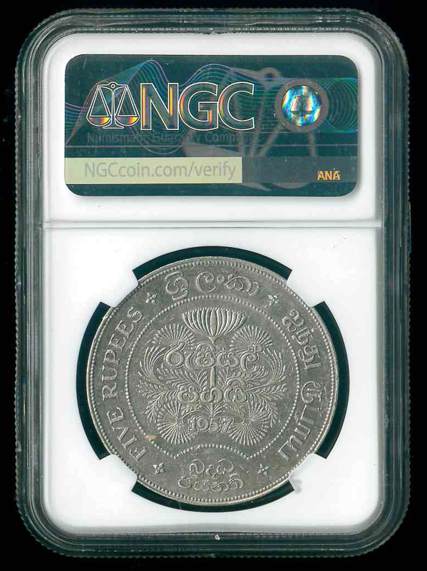 1957 錫蘭 5R 銀幣 NGC AU55