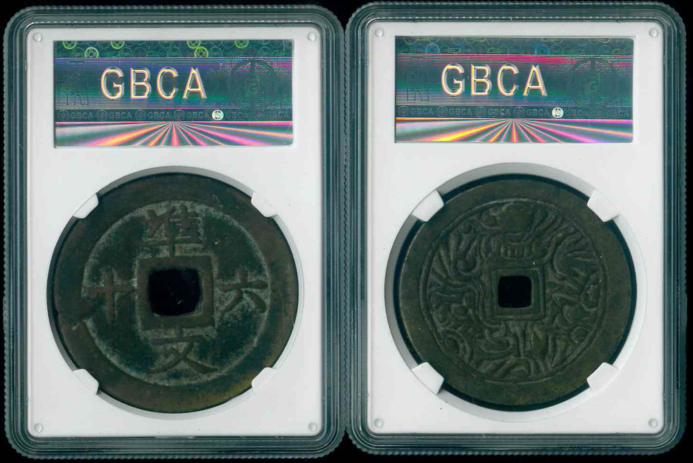 17-19世紀 安南嗣德寶鈔(准文六十)/ 景興通寶花錢-安南鑄 GBCA 美80, 共2枚