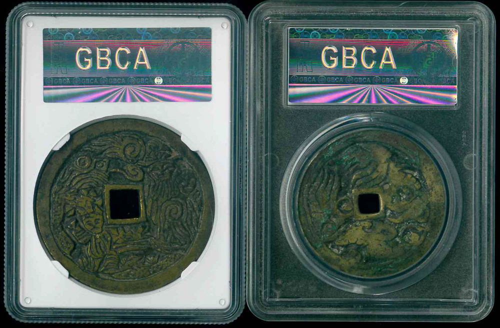 17-19世紀& ND. 景興通寶花錢-龍鳳圖,安南鑄/ 清代 指日高升花錢-人物故事 GBCA 上72/ 美80(05), 共2枚