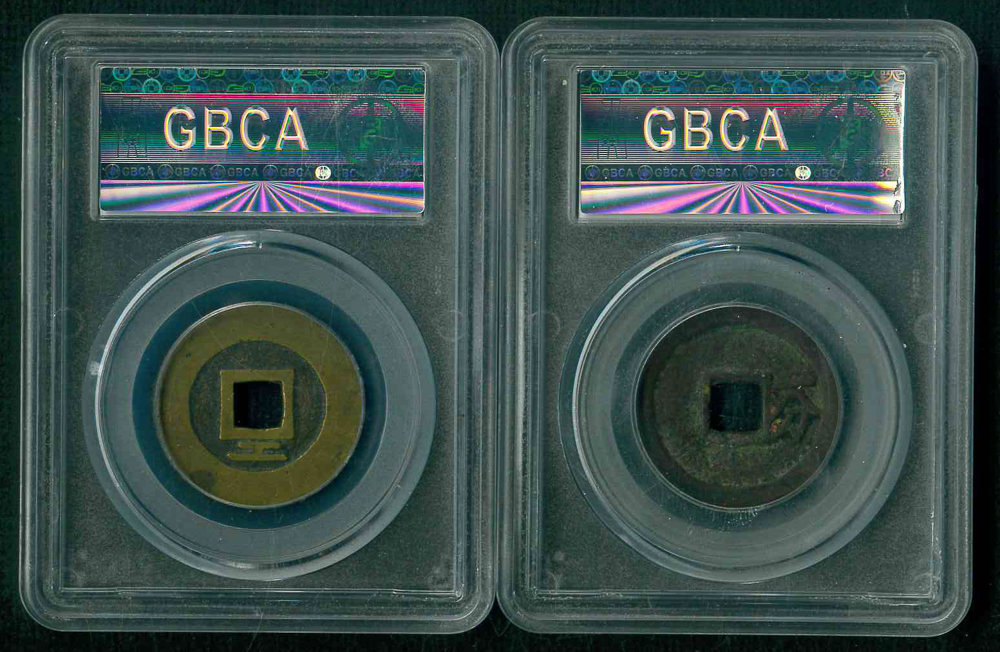 1644-74 明/清代 大順通寶-背工/ 裕民通寶-一分 GBCA 美80(05)/ 美85, 共2枚