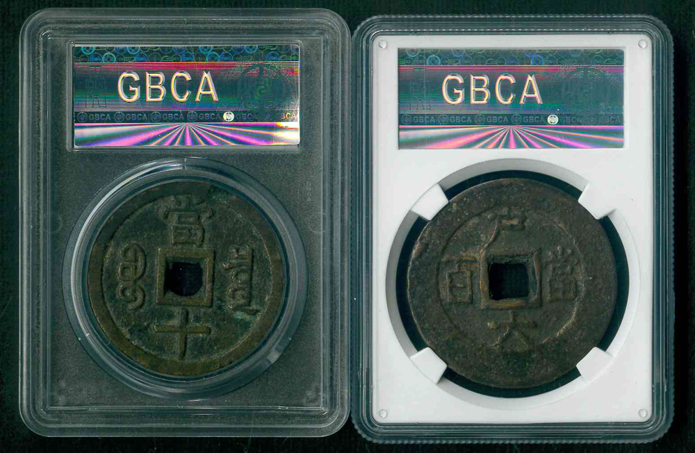 1853 &17-19世紀 清代 咸豐重寶-寶泉當十大樣/ 朝鮮 常平通寶-戶大當百 GBCA 美78(07)/ 美78, 共2枚