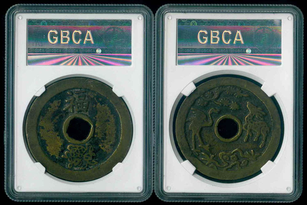 清代 長命富貴花錢-鹿鶴同春/ 狀元及第花錢-福花圖 GBCA 美78(06)/ 美80(06), 共2枚