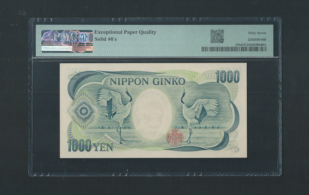 1984-93ND. 日本 1000 Yen PMG 67 EPQ 編號: ES666666R,全6