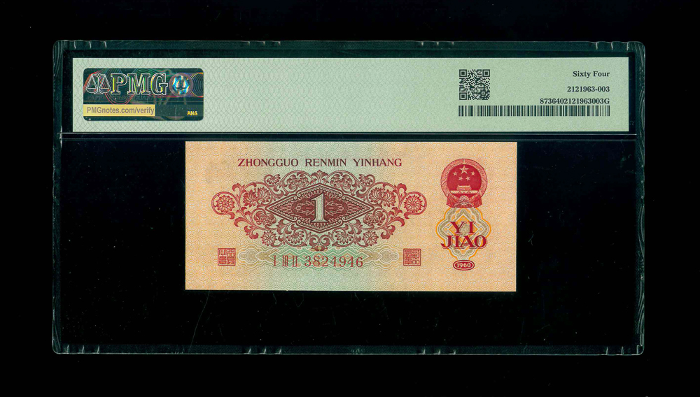 1960 中國人民銀行 壹角 PMG 64 編號: 3824946 Block 132