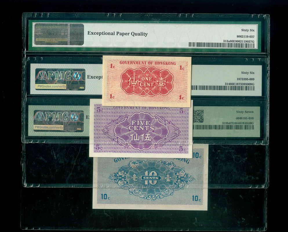 1940-41ND. 香港政府 壹仙-壹毫 PMG 66-67 EPQ 編號: A1575150…, 共3張
