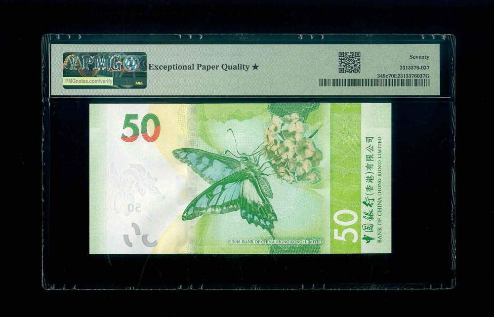 2023 香港中國銀行$50 PMG 70 EPQ* 編號: CK222888, 少有滿分星標雙豹號