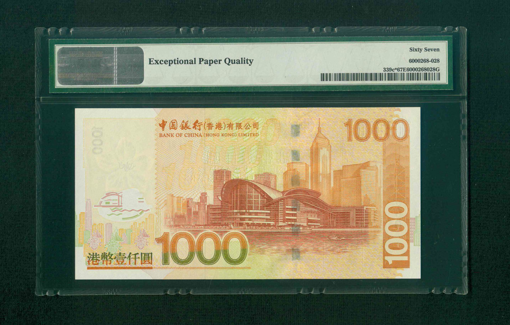 2008 香港中國銀行$1000 PMG 67 EPQ 編號: ZZ515960, 補版系列