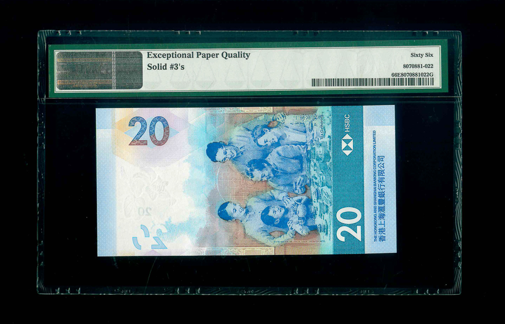 2018 香港上海匯豐銀行$20 PMG 66 EPQ 編號: CC333333, 少有雙冠全3
