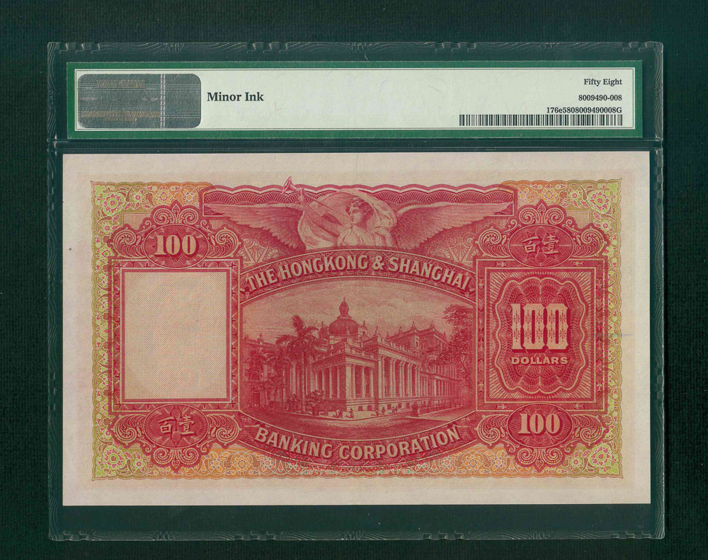 1946 香港上海匯豐銀行$100 PMG 58 編號: B920330, 有墨水沾染