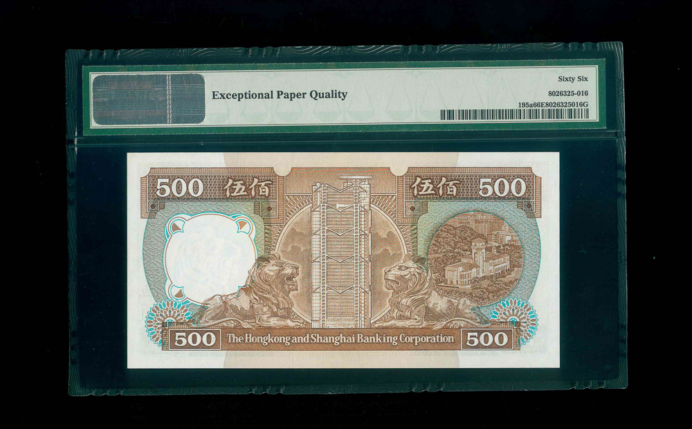 1987 香港上海匯豐銀行$500 PMG 66 EPQ 編號: AA602992, 頭版系列
