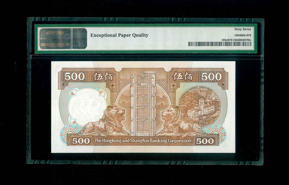 1991 香港上海匯豐銀行$500 PMG 67 EPQ 編號: BM484665
