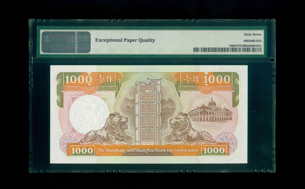 1991 香港上海匯豐銀行$1000 PMG 67 EPQ 編號: ZZ197256, 補版系列