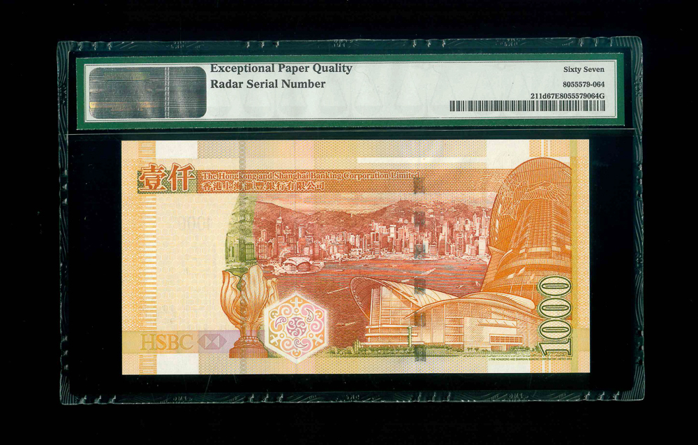 2007 香港上海匯豐銀行$1000 PMG 67 EPQ 編號: EC321123, 雷達號