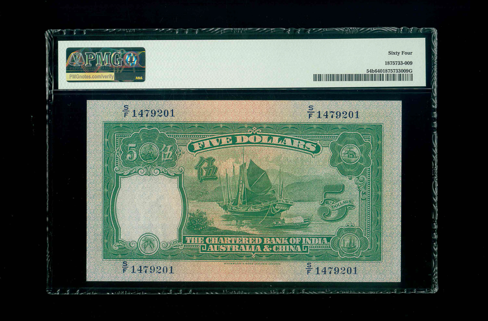 1941 印度新金山中國渣打銀行$5 PMG 64 編號: S/F 1479201