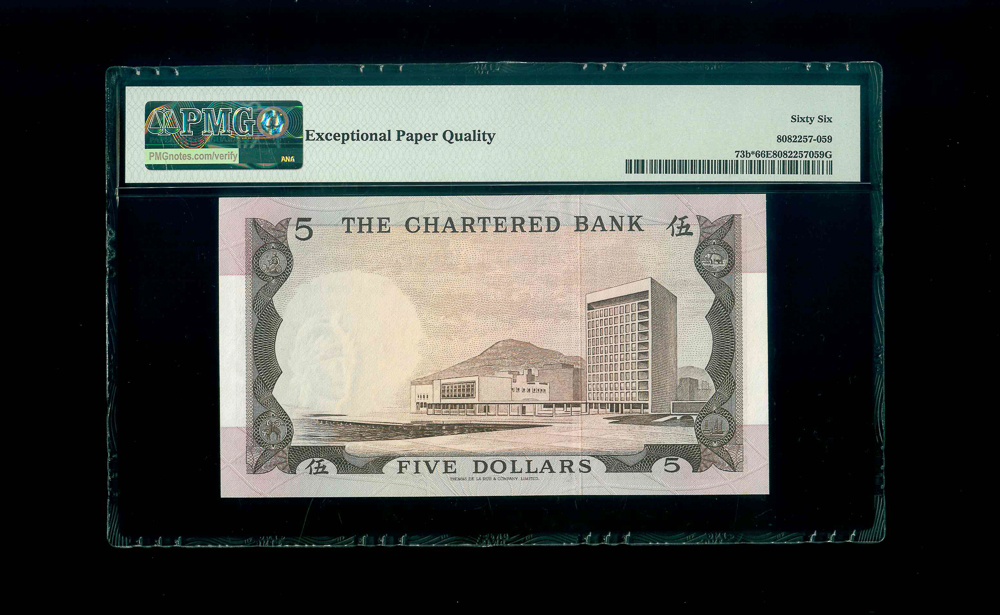 1975 香港渣打銀行$5 PMG 66 EPQ 編號: Z187079, 補版系列