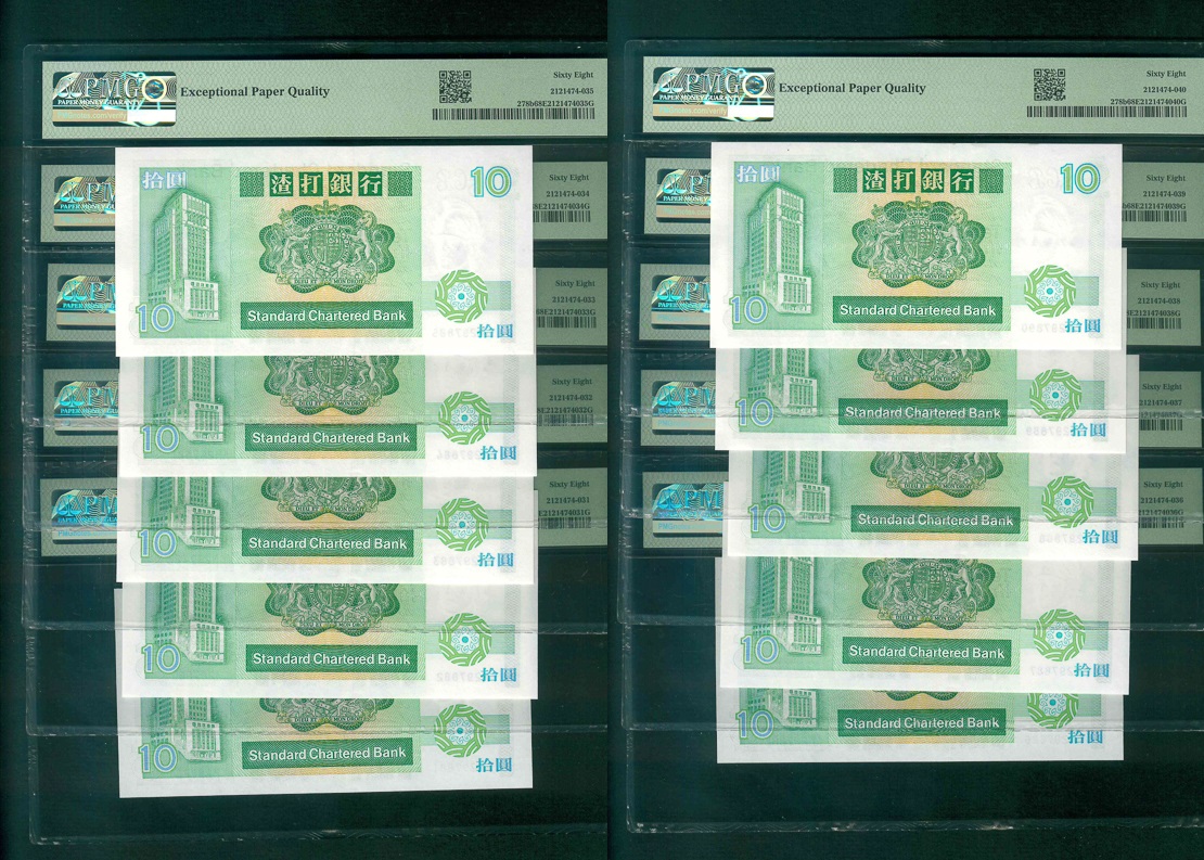 1986 香港渣打銀行$10 PMG 68 EPQ 編號: AM297881-890, 高分標準十連,含豹子號