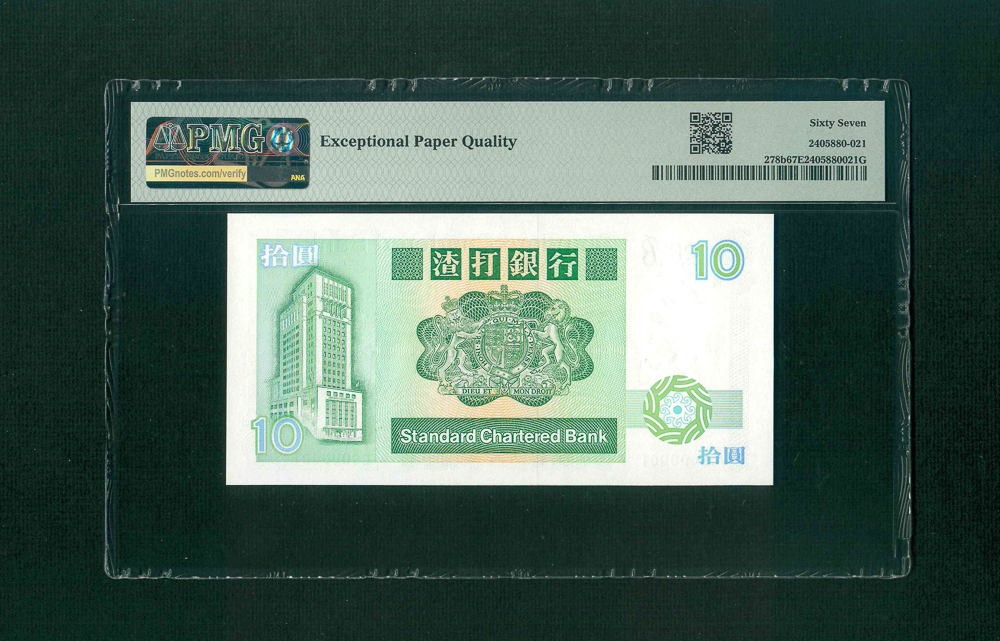 1988 香港渣打銀行$10 PMG 67 EPQ 編號: CS0000001, 天字1號