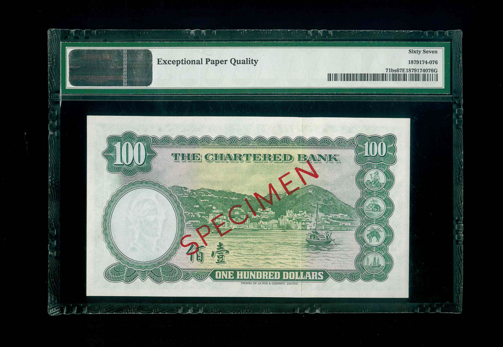 1961-70ND. 香港渣打銀行$100 PMG 67 EPQ 編號: Y/M 0000000, 樣鈔, 米拿簽名