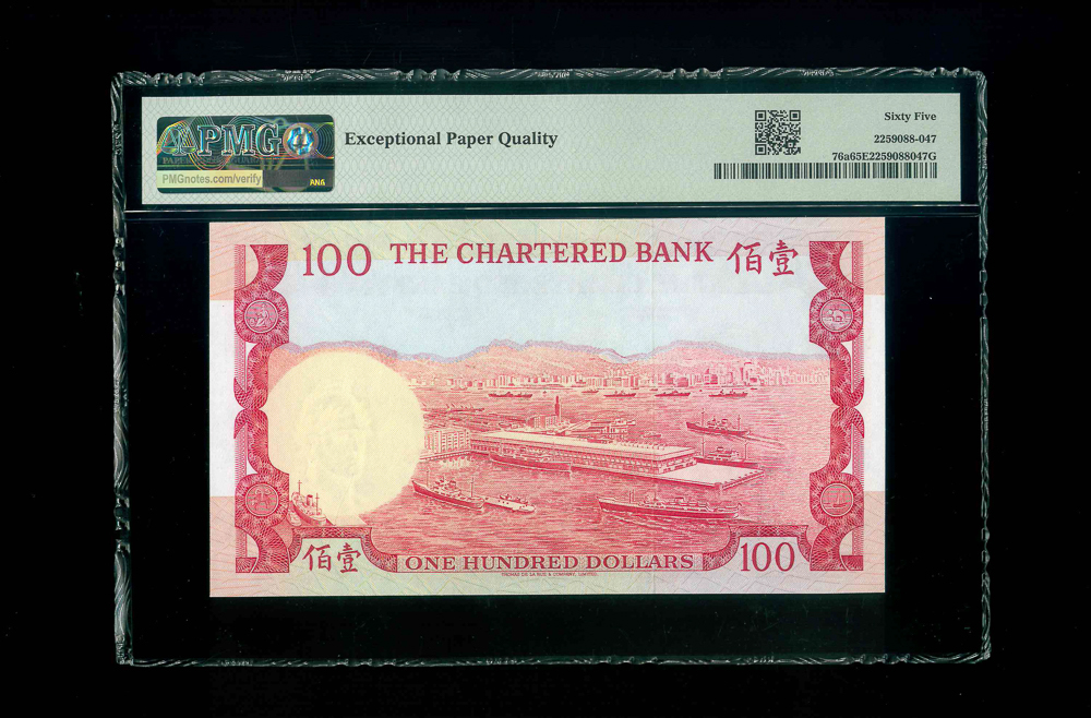 1970-75ND. 香港渣打銀行$100 PMG 65 EPQ 編號: A225405, 少有頭版