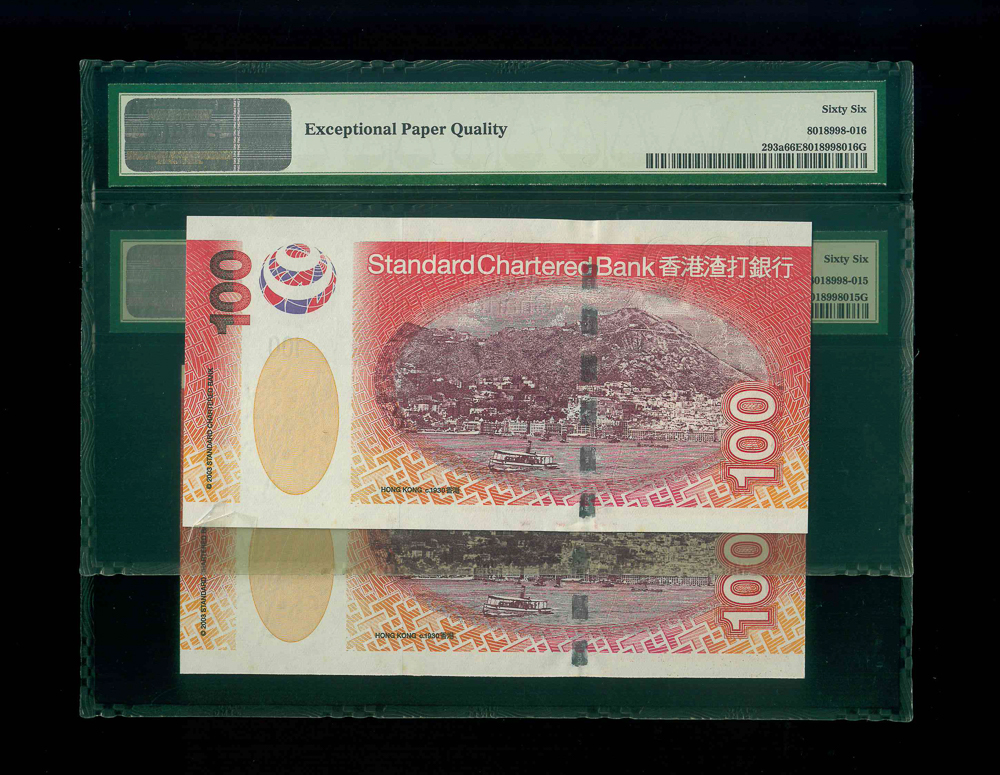 2003 香港渣打銀行$100 PMG 66 EPQ 編號: AA000051/ AA150000, 頭版趣味號, 共2張