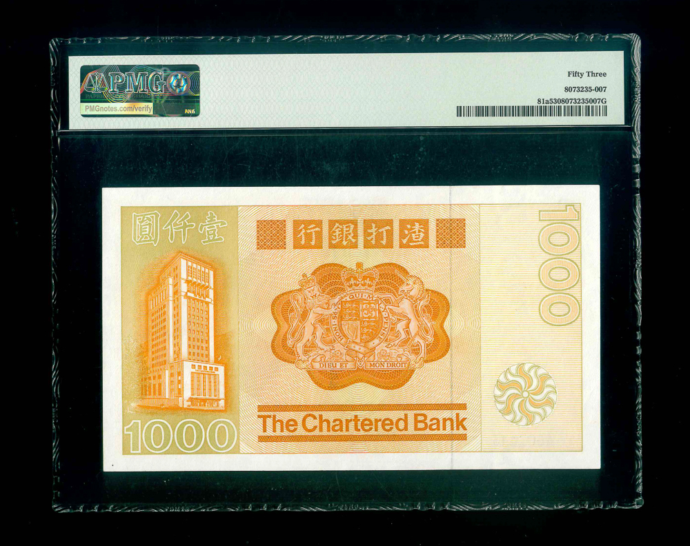 1979 香港渣打銀行$1000 PMG 53 編號: A907443, 頭版系列
