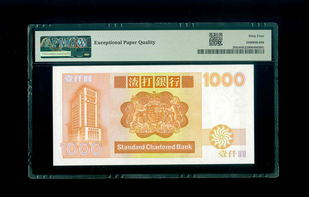 1988 香港渣打銀行$1000 PMG 64 EPQ 編號: E111111, 全1