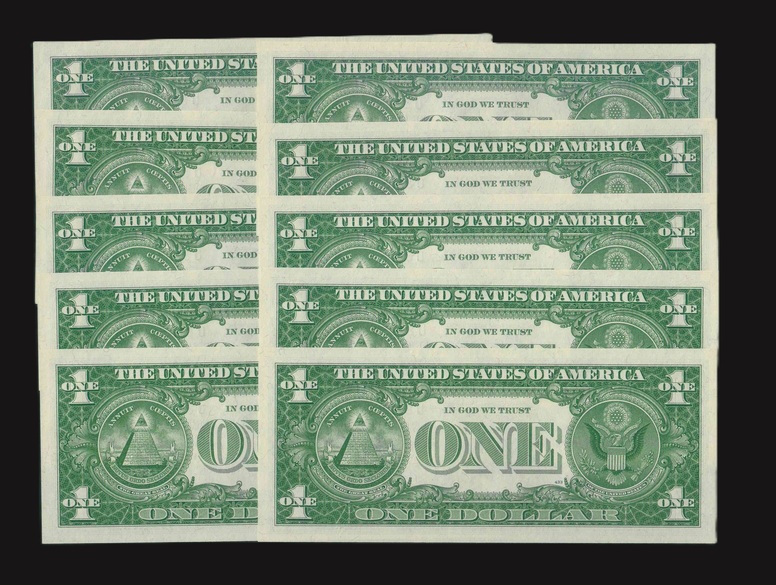 1957B 美國 $1 UNC 編號:U82854162A…(共10張,2組各連號,頂級雪白)