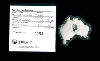 2012 澳洲地圖形彩色笑翠鳥 $1 (1oz Silver) 品相如圖 編號:NIL(証書)